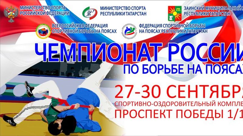 С 27 по 30 сентября 2018 года в городе Заинске состоится Чемпионат России по борьбе на поясах. Место проведения соревнований - спортивно-оздоровительный комплекс, пр. Победы 1/12.