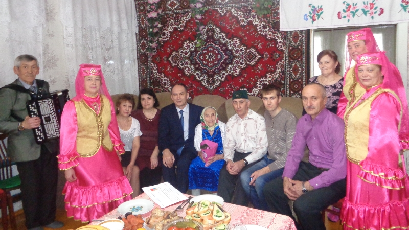 Свой 90-летний юбилей отметила жительница с. Аксарино Шайдуллина Муниба Ахметхановна. Поздравить юбиляршу с большим праздником приехали заместитель главы района Акатьев Валерий Григорьевич, глава Аксаринского сельского поселения Гильманов Юрий Исмагилович и работники автоклуба МБУК "РДК". В честь юбилярши звучали добрые пожелания, любимые песни, были вручены памятные подарки.