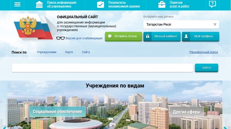 На официальном сайте www.bus.gov.ru Вы можете оставить отзыв о работе учреждений нажав на кнопку «Оставить отзыв».