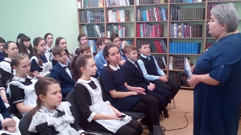Борис Львович Васильев – фронтовик, прозаик, публицист, драматург, киносценарист. В своем творчестве он неоднократно обращался к военной теме. Быть на войне и не писать о войне он не мог. Не одно поколение знает и любит его книги. Самое известное произведение – повесть «А зори здесь тихие». 3 декабря учащиеся 6 А и 9 Б классов СОШ №4 приняли участие в читательской конференции, подготовленной З. Гильмановой, главным библиотекарем читального зала Центральной библиотеки имени С. Рафикова. Ученики вспоминали главных героев книги: старшину Васкова и пять зенитчиц, принявшими неравный бой с фашистами, их поступки, ставшие подвигом; размышляли о том, что такое война. Как показала конференция, интерес к повести не ослабевает. Есть в этом небольшом произведении то, что не оставляет равнодушным ни взрослого, ни подростка – трагическая судьба девушек, отдавших жизнь за Родину в жестокой схватке с фашизмом. У каждой была своя судьба, были свои мечты, стремления. Девушки погибли во имя светлого будущего, во имя того, чтобы над нашей страной всегда было чистое небо и тихие зори. У войны не женское лицо! Конференция сопровождалась слайдовой презентацией и кадрами из художественного фильма «А зори здесь тихие» (экранизация 1972 года). Была оформлена выставка «Мы помним…» с рисунками шестиклассников на военную тематику.