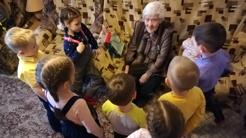 Дети поздравили ветеранов, вручили им поздравительные открытки, сделанные своими руками. Очень важным для воспитанников детского сада было общение с теми, кто помнит страшные годы войны, познал тяжелый труд, голод. Ребята слушали рассказы ветеранов, задавали вопросы.