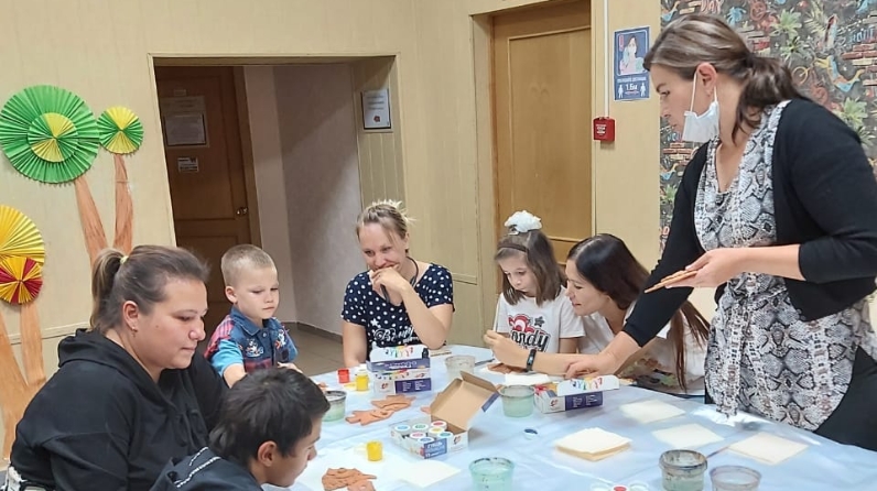 Опытными специалистами-рукодельницами было проведено уникальное занятие по гончарному делу для детей возрастных категорий 3-5 лет и 7-11 лет. Под руководством специалиста дети с мамами продолжили изготовление своих творческих работ. После обжига глиняных изделий, которые превратились уже в красивых глиняных рыбок, с ажурными рисунками, последовал этап раскрашивания и преображения в радужные цвета, с различной цветовой гаммой и оттенками. Дети и взрослые с изумлением и восторгом смотрели на свои волшебные завершенные изделия.