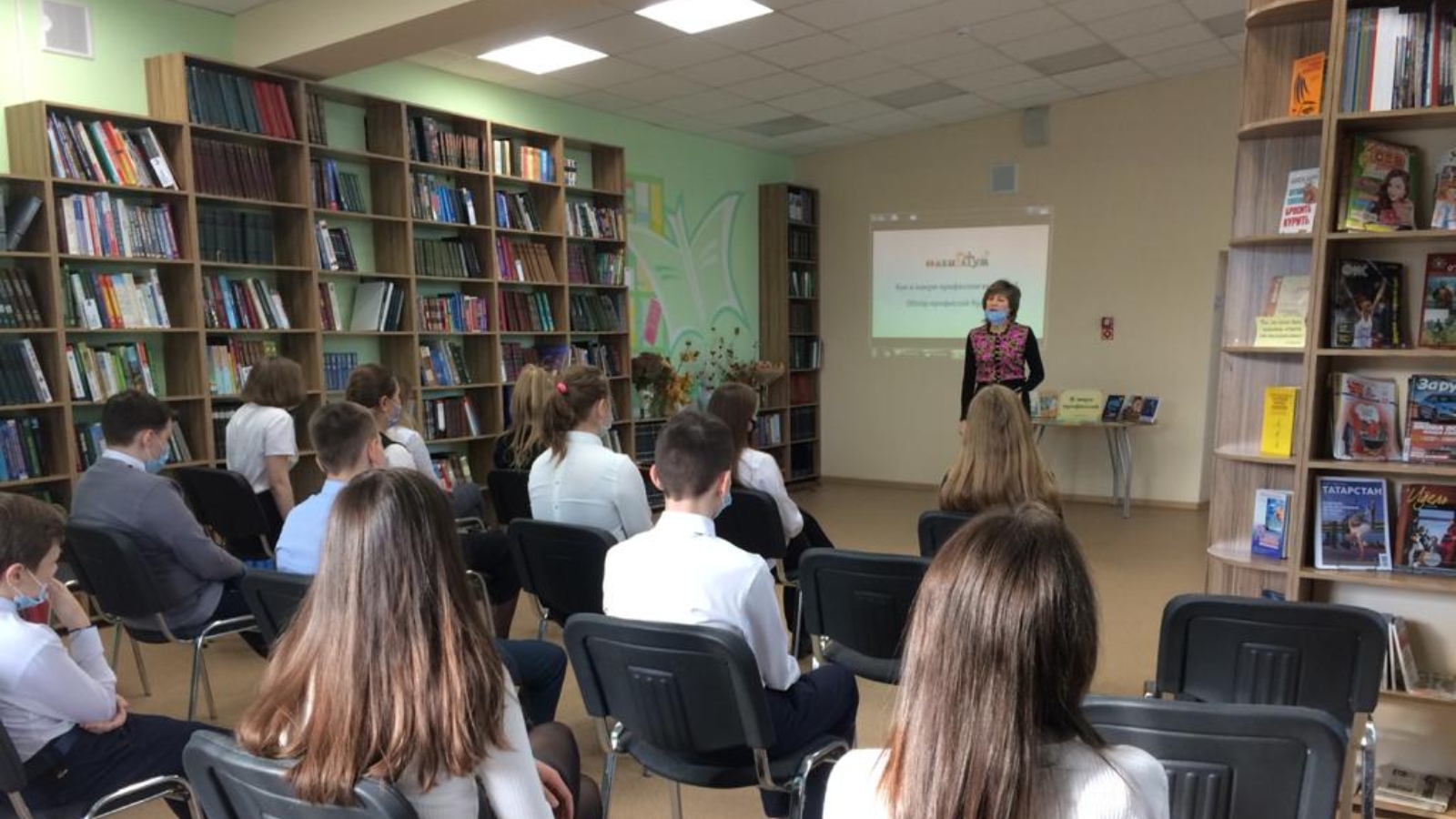 20 октября в читальном зале Центральной библиотеки для учащихся 9-го класса школы №2 прошел час профориентации «Новое поколение выбирает», в котором приняла участие профконсультант ГКУ «Центр занятости населения города Заинска» Ляйсан Багаутдинова. Целью данного мероприятия было расширение представления подростков о различных профессиях, формирование позитивного отношения к труду, побуждение учащихся к поиску информации о профессиях, к осознанному профессиональному выбору.