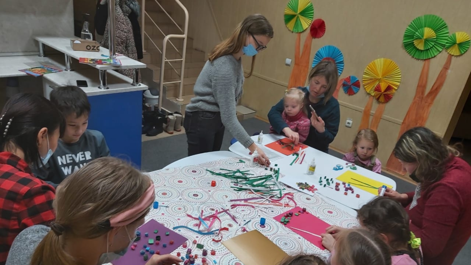 На днях на базе КЦСОН «Радость" психологом Центра и волонтерами отряда «Profistail» было организовано и проведено групповое занятие в клубе для детей с ОВЗ и их родителей. В работе с «особыми» детьми и их родителями психологи применяют различные методы и техники. Данное занятие проходило при помощи метода арттерапии, как способа психологической коррекции, что помогает установлению эмоционального контакта, объединению детей в коллектив, снятию эмоционального напряжения, развитию психических процессов памяти, внимания, восприятия, развитию речи, моторики.