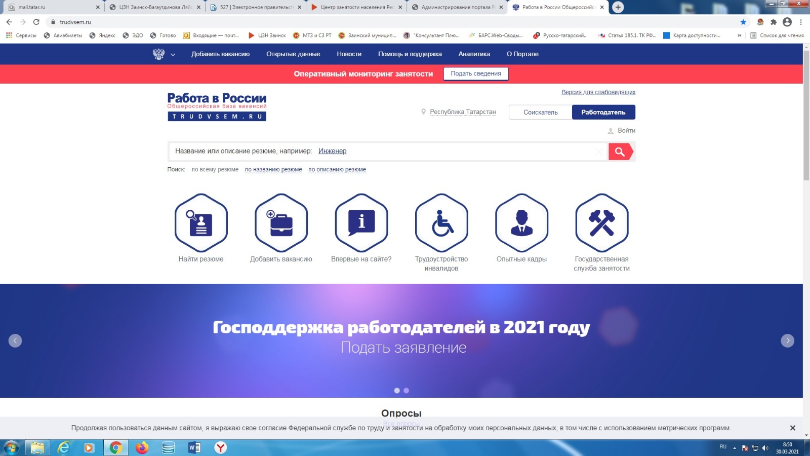 ГКУ «Центр занятости населения города Заинска» информирует в соответствии с постановлением Правительства Российской Федерации от 13 марта 2021 г. № 362 «О государственной поддержке в 2021 году юридических лиц и индивидуальных предпринимателей при трудоустройстве безработных граждан», в 2021 году предусмотрено возмещение юридическим лицам и индивидуальным предпринимателям затрат, связанных с трудоустройством безработных граждан Фондом социального страхования Российской Федерации.
