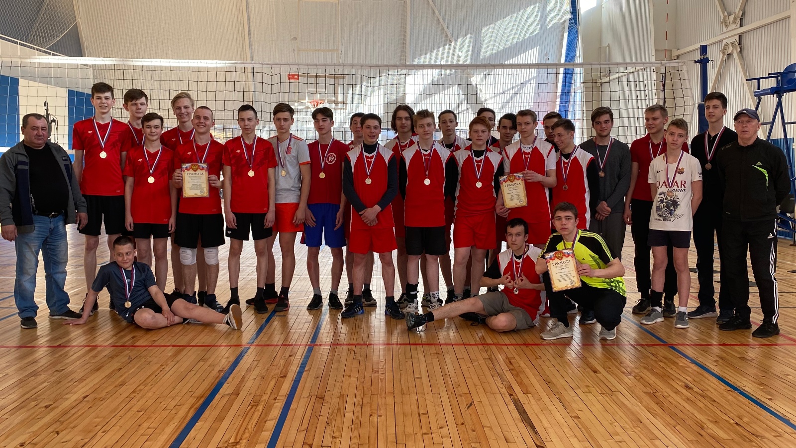 19 апреля в спортивном зале спортивно-оздоровительного комплекса состоялись полуфинальные и финальные игры Первенства МБУ «Спортивная школа «Барс» района по волейболу среди юношеских команд образовательных учреждений района, посвященное 76-й годовщине Победы в Великой Отечественной войне. Места распределились следующим образом: