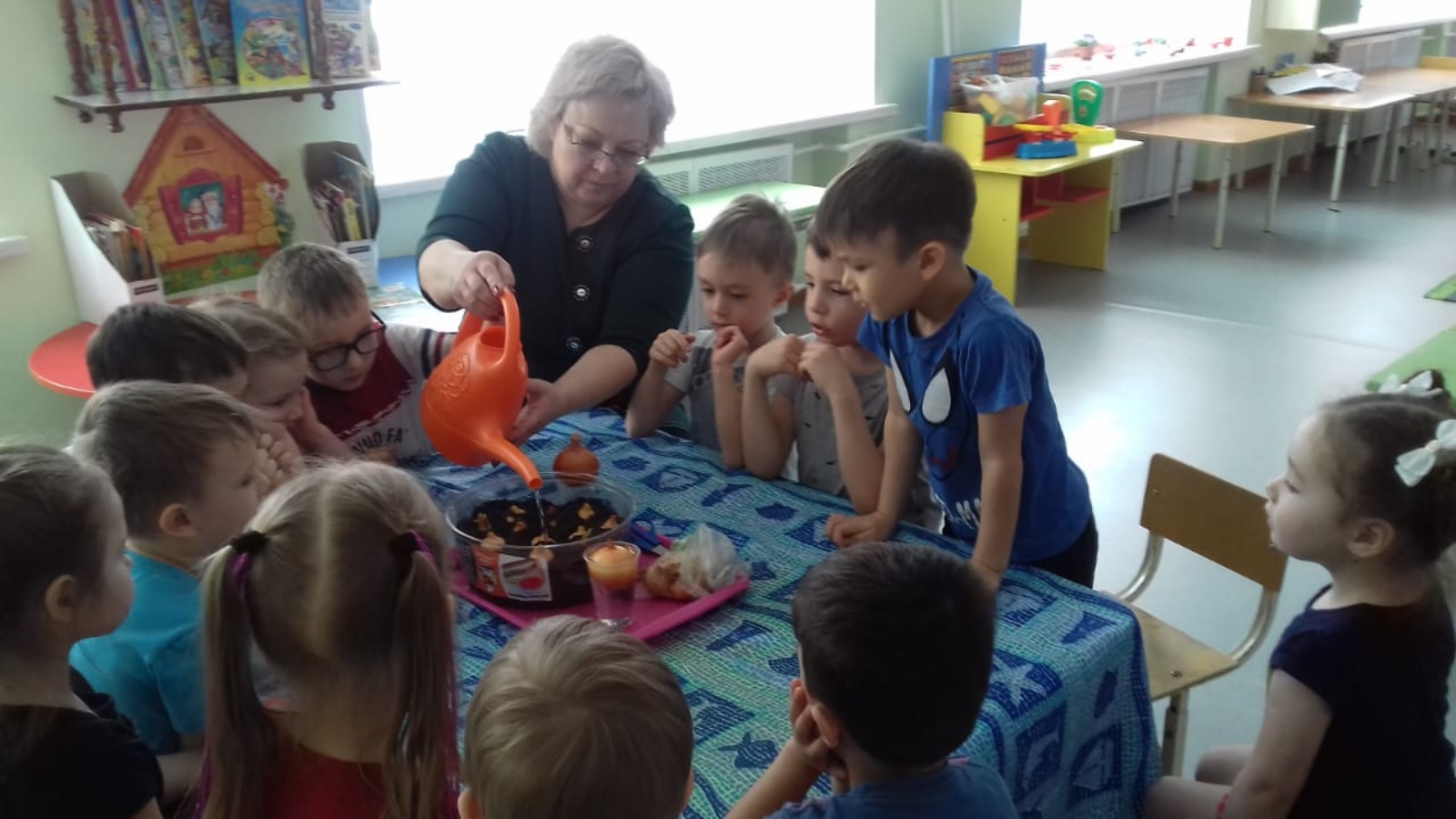 В детском саду «Теремок» воспитатель средней «А» группы А.Р. Васильева совместно с детьми посадили лук на зелень. Каждый ребенок принял активное участие в процессе посадки лука. Это дает возможность расширять и углублять представления о репчатом луке, закреплять представление о том, что для роста репчатого лука в домашних условиях нужен свет, влага, тепло, почва, закреплять знания детей об особенностях строения репчатого лука и упражнять в правильных приемах посадки луковиц.
