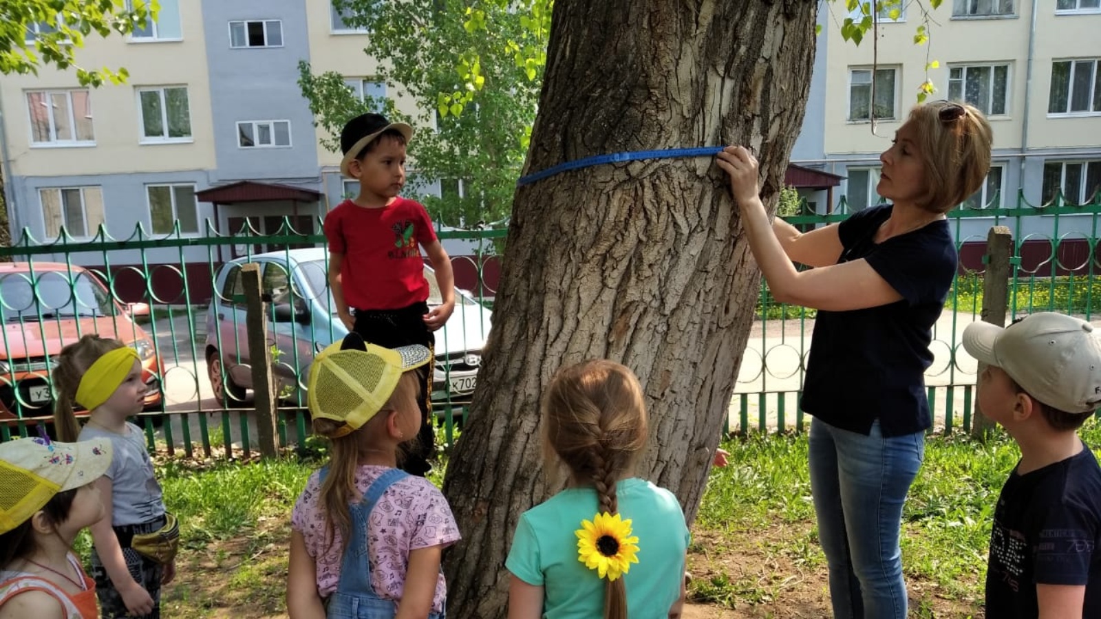 На территории детского сада «Красная шапочка» растёт очень много различных деревьев. Какие-то уже очень давно посажены, какие-то позже. Воспитатель старшей группы Надежда Сергеевна предложила детям провести исследование, в результате которого можно узнать примерный возраст деревьев. Дети очень заинтересовались этой идеей. Чтобы выяснить возраст дерева дошколятам для этого нужно было измерить длину окружности ствола на высоте примерно 1,5 м., полученный результат вместе с воспитателем делили на 5 и умножали на 2. Это и есть возможный возраст. Измеряли два тополя, березу, ель и две яблони. Оказалось, что самые старые деревья растут на участке группы "Лукоморье", это тополя и береза, им больше 50 лет ели 40 лет, а самые молодые - яблони, им около 30 лет. Вот такое интересное и познавательное исследование было проведено в рамках экологического воспитания.