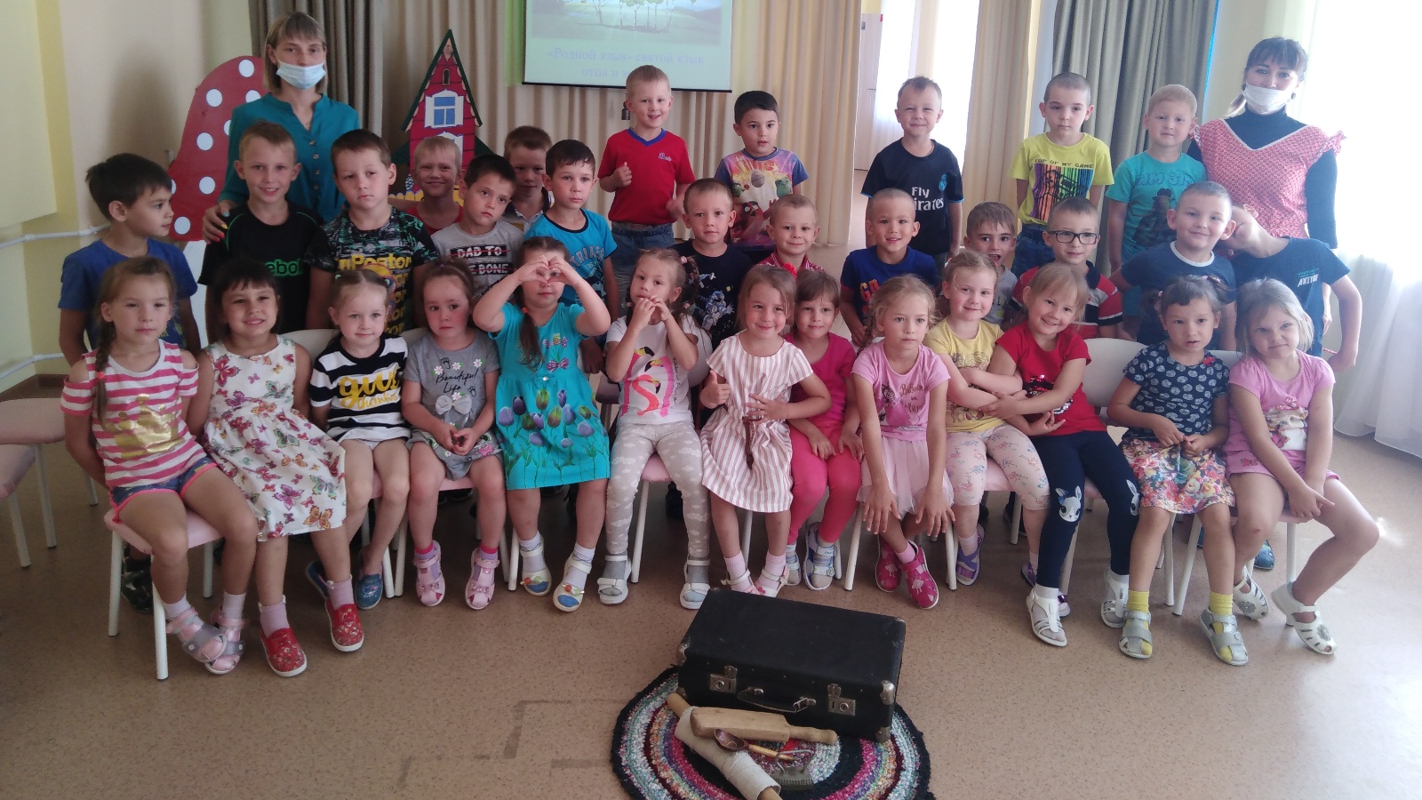 Сегодня сотрудники Заинского краеведческого музея в детском саду «Теремок» провели конкурсно- развлекательное мероприятие «Родной язык - святой язык отца и матери», посвященное Году родных языков и народного единства. В ходе мероприятия дети вспомнили и раскрыли секрет всем известных слов «родная» и «родной». Сценический персонаж Бабушка доставала из своего сундука вещи, ставшие «родными», рассказывала об их применении в былые времена. На «сказочном ковре – самолете» детишки побывали на своей малой Родине, увидели красивые уголки нашего замечательного города, собирали тематический пазл. В конце мероприятия Садриева Кира и Баландина Карина прочли стихотворения о родном садике.