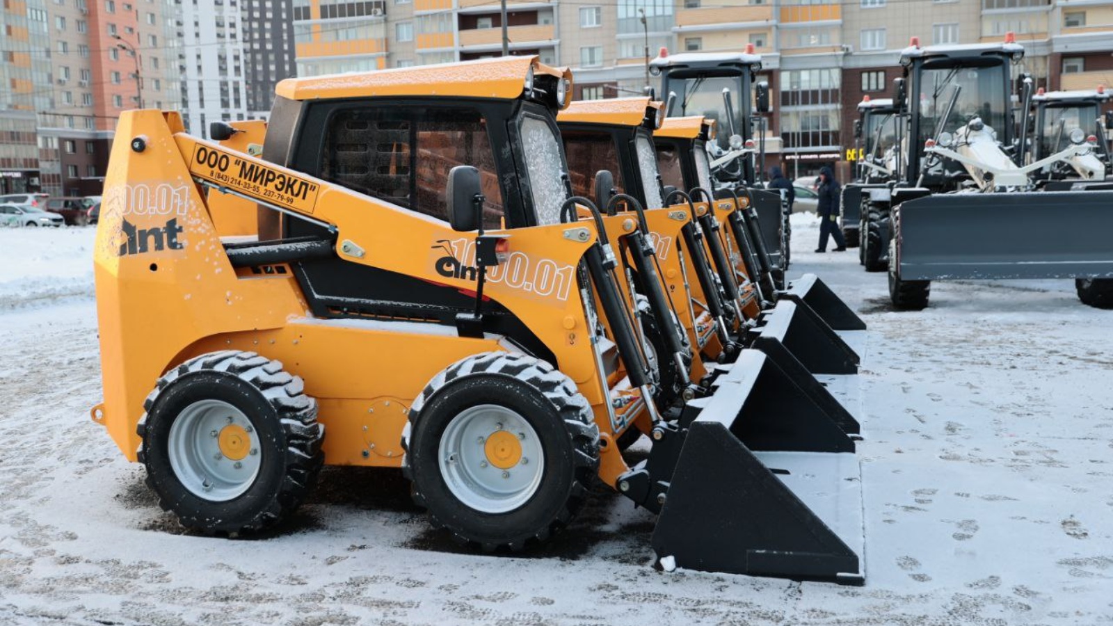 33 единицы из 69 - фронтальные погрузчики «Амкодор». Один из них был передан Заинску. Ключи от тяжелой техники вручили главе района Разифу Каримову.