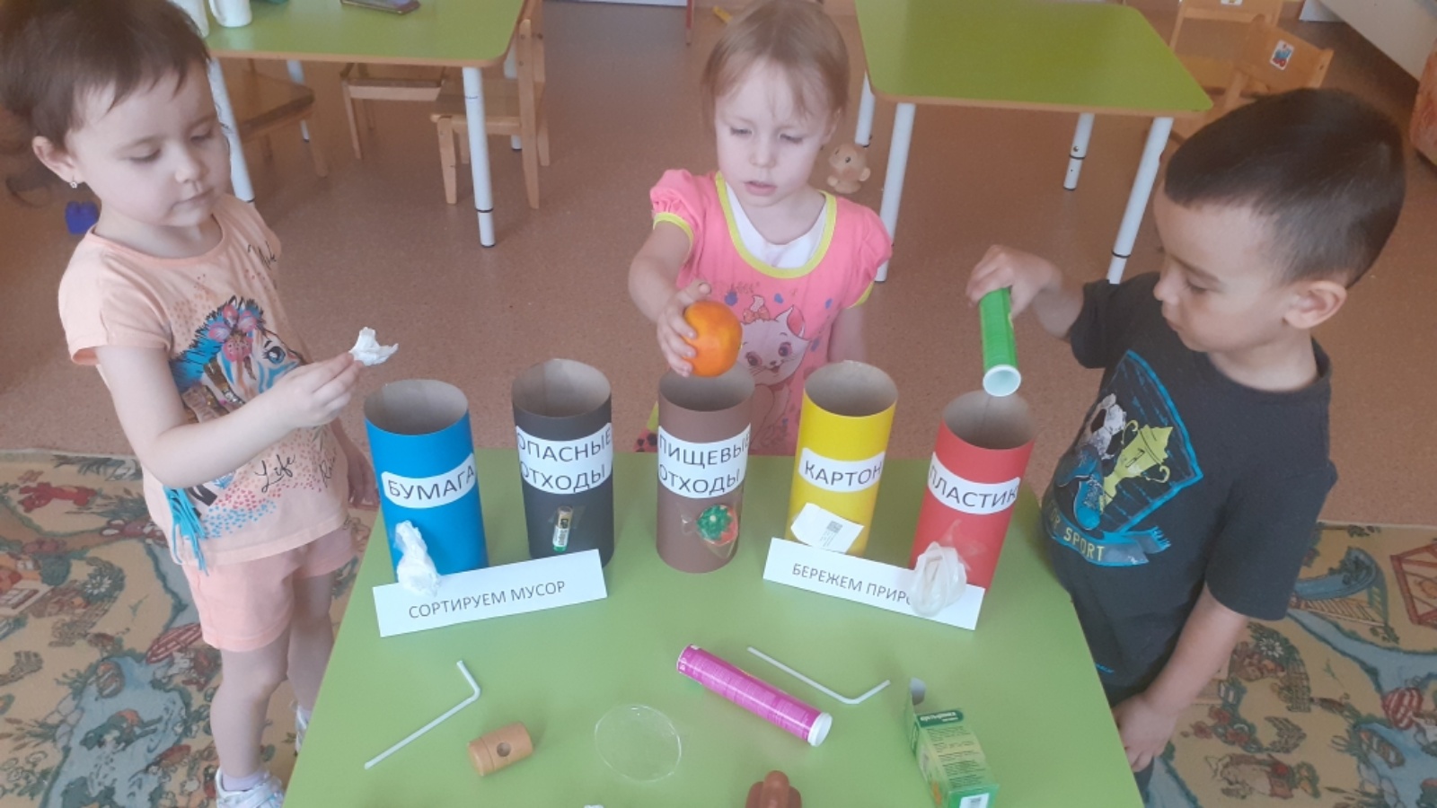 Один из важнейших навыков, которому стоит научить ребенка в детском саду - раздельный сбор мусора. В детском саду «Зернышко» в группе «Колобок» были проведены познавательные занятия по экологии, на которых воспитанников познакомили с принципами сбора и утилизации бытовых отходов. После проведенной беседы, просмотра мультфильма о раздельном сборе мусора и чтения стихотворения, ребята учились сортировать отходы по разным контейнерам. В игровой форме дошколята разделяли мусор и складывали в разные контейнеры. Так с детства можно приучить детей к порядку и чистоте.
