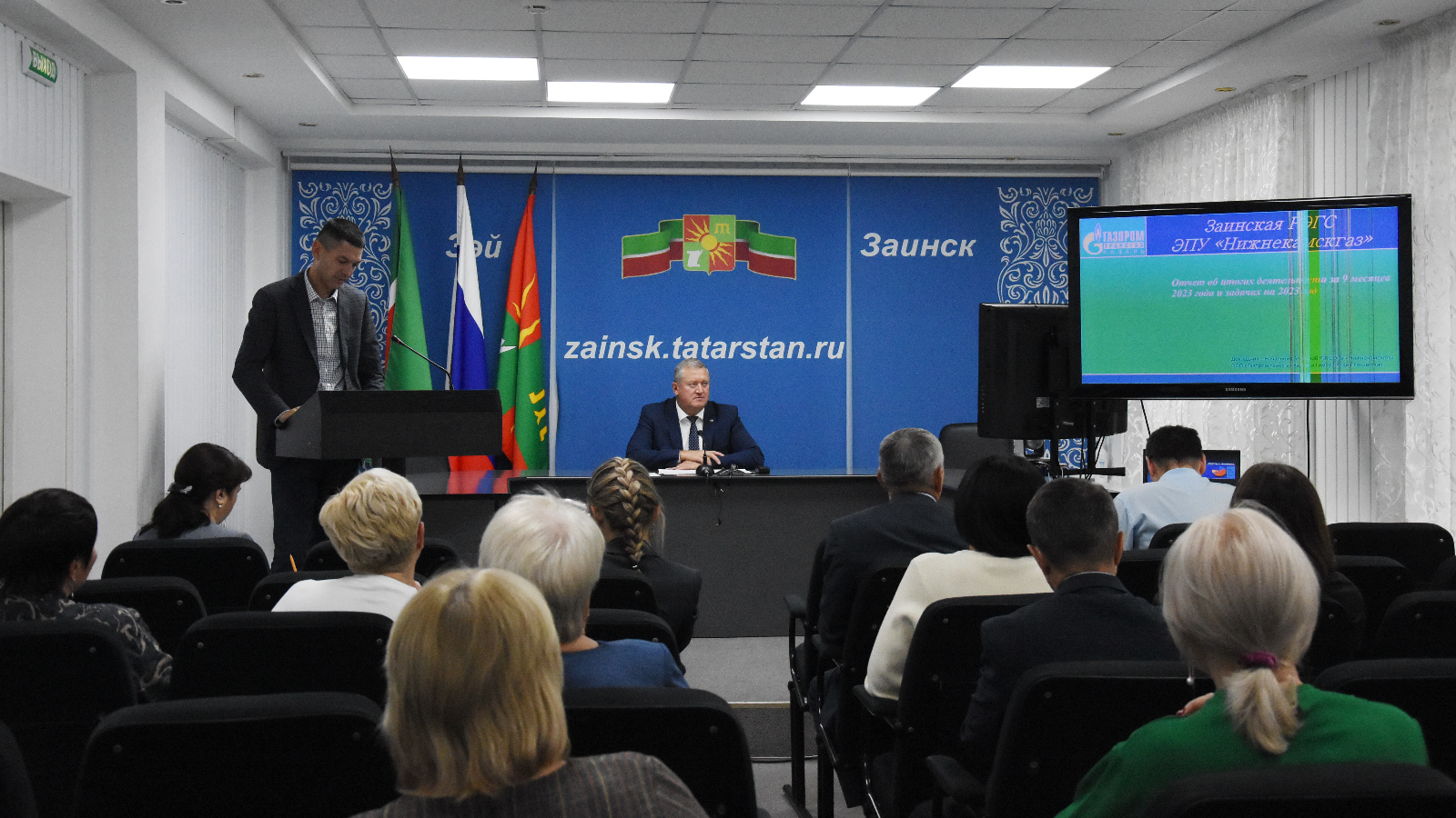 С докладом «Об итогах деятельности Заинской РЭГС ЭПУ «Нижнекамскгаз» ООО «Газпром трансгаз Казань» за 9 месяцев 2023 года и ожидаемых итогах деятельности за 2023 год» выступил начальник Заинской РЭГС ЭПУ «Нижнекамскгаз» ООО «Газпром трансгаз Казань» Гимаев Радик Рахимович.