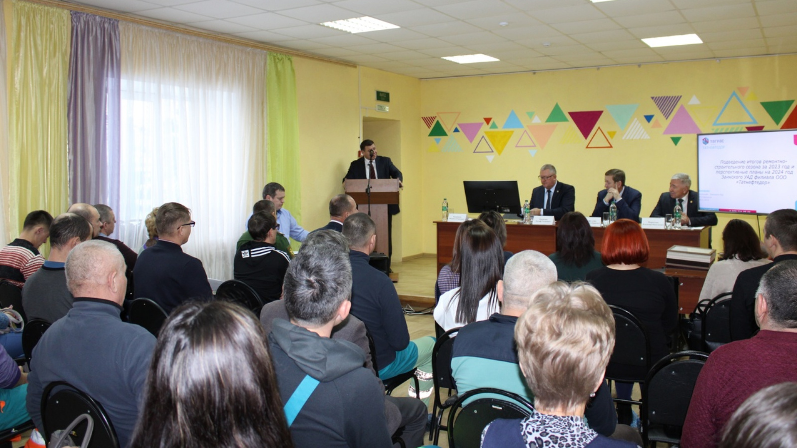 Начальник Заинского УАД Хаернасов Фидаиль Рурикович выступил с докладом об итогах деятельности предприятия в 2023 году и задачах на 2024 год. Основные виды деятельности: ремонт, строительство и содержание автомобильных дорог. Среднесписочная численность работников составляет 111 человек. По инвестиционной программе приобретены новая техника и оборудование. Также об итогах работы 2023 года было заслушано выступление директора ООО «Татнефтедор» Гарифуллина Рустема Габдулбариевича.