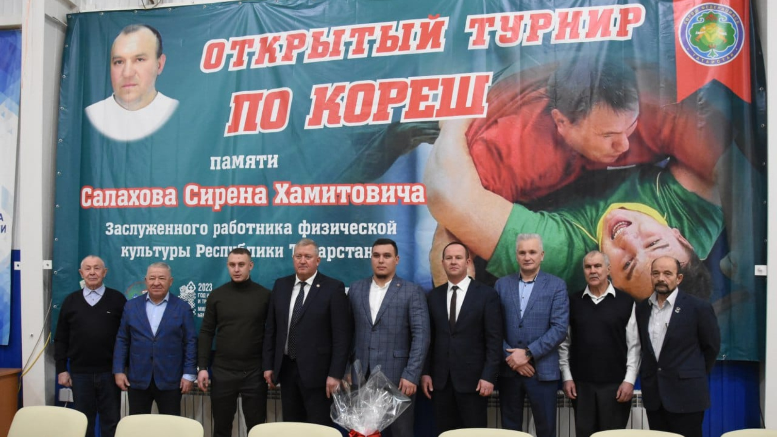 Сегодня в спортивно-оздоровительном комплексе «Старт» проходит Республиканский турнир по борьбе корэш, посвященный памяти Заслуженного работника физической культуры РТ Салахова Сирена Хамитовича. В соревнованиях принимают участие 92 спортсмена из 8 муниципальных районов Республики Татарстан. В церемонии открытия приняли участие Глава Заинского муниципального района Каримов Разиф Галиевич, Руководитель Исполнительного комитета района Галеев Эмиль Эдуардович, заместитель Руководителя Исполнительного комитета района по социальным вопросам Ревина Светлана Юрьевна, общественные помощники Главы района Миннахметов Анас Ахатович, Файзуллин Ракип Назипович, жена Сирена Хамитовича – Ляйсан Зиннуровна, сыновья – Радик и Рустам, друзья и родственники, ветераны спорта Заинского муниципального района. Выступая с приветственным словом перед собравшимися, Разиф Галиевич отметил достойный вклад Сирена Хамитовича в развитие в районе борьбы корэш, участникам турнира пожелал красивых схваток без травм. -Борьба - удел самых стойких, целеустремленных, сильных духом, верных национальным традициям спортсменов, и именно эти человеческие качества старался привить своим воспитанникам Сирен Хамитович. Сегодня в напряжённой борьбе вам предстоит показать не только истинную преданность борьбе корэш, но и продемонстрировать лучшие борцовские качества, незаурядное мастерство и хорошие технические приемы. От всей души желаю всем заслуженных побед, крепкого здоровья, счастливой и мирной жизни! Пусть на ковре победят сильнейшие!-сказал Глава района. Заслуженный работник физической культуры РТ Салахов Сирен Хамитович родом из деревни Сармаш-Баш. По образованию преподаватель-организатор физической культуры и спорта, он 10 лет проработал тренером по корэш в спортивной школе «Зай». Его старший сын и воспитанник Салахов Радик - Мастер спорта Российской федерации по корэш и борьбе на поясах, является неоднократным победителем и призером Первенств Мира, России и Республики Татарстан, 8-ми кратным абсолютным батыром Заинского Сабантуя. Младший сын Салахов Рустем - кандидат в Мастера спорта по борьбе на поясах, так же является победителем и призером Всероссийских соревнований и Первенств и Чемпионатов Республики Татарстан. Также и другие воспитанники Сирена Хамитовича защищают честь нашего района своими победами в республиканских и всероссийских соревнованиях.