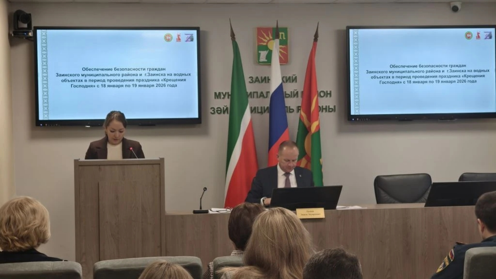 14 января в малом зале администрации состоялось первое в этом году заседание Комиссии по предупреждению и ликвидации чрезвычайных ситуаций и обеспечению пожарной безопасности Заинского муниципального района, на котором рассматривался вопрос обеспечения безопасности граждан Заинского муниципального района и г. Заинска на водных объектах в период проведения праздника «Крещение Господня».
