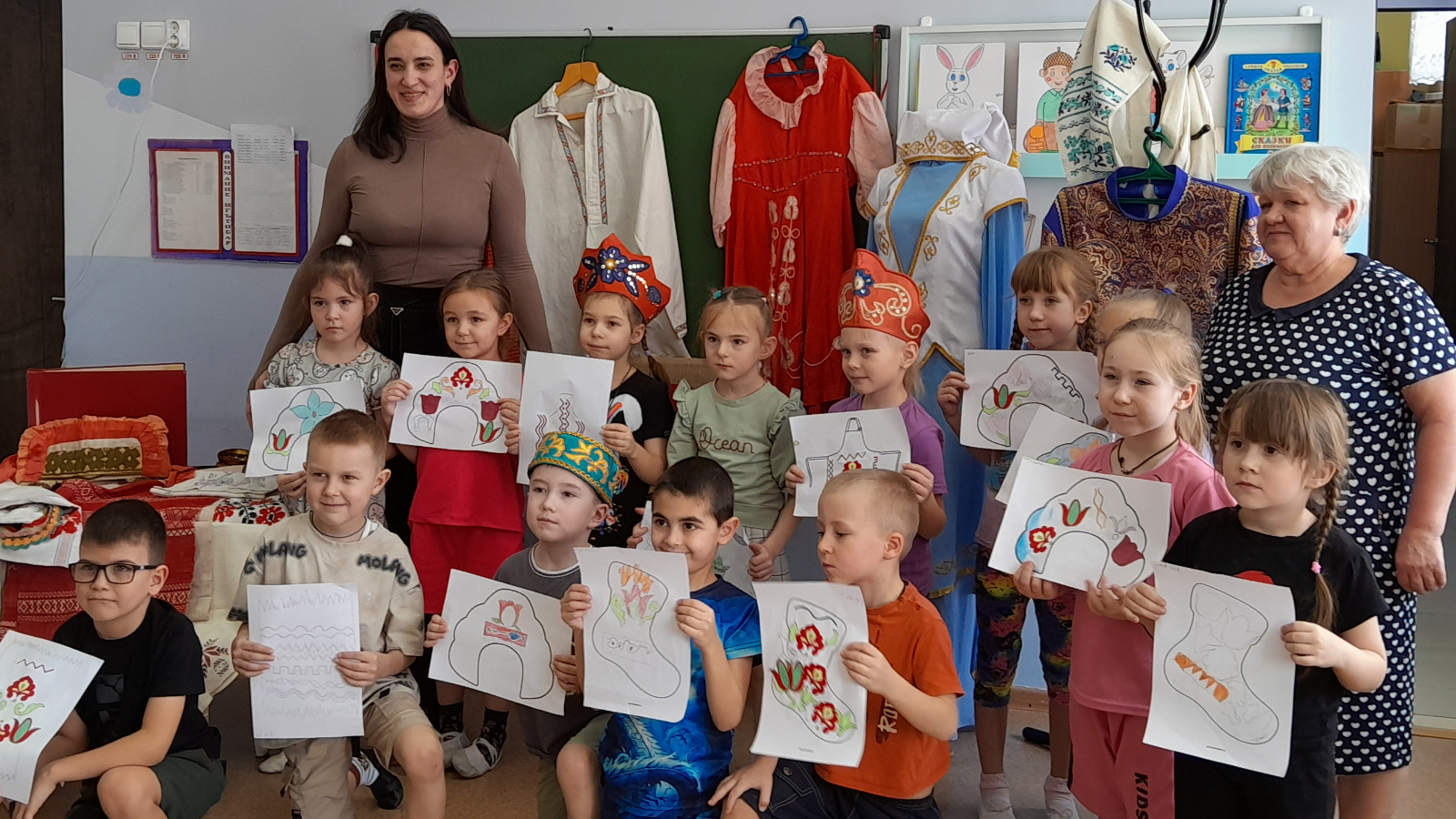Дети активно участвовали и делились впечатлениями. Ребята узнали символику трёх типов орнаментов, научились различать мотивы, прикоснулись к экспонатам и создали собственные узоры. Каждый ребёнок получил памятный рисунок с национальным узором и море позитива.