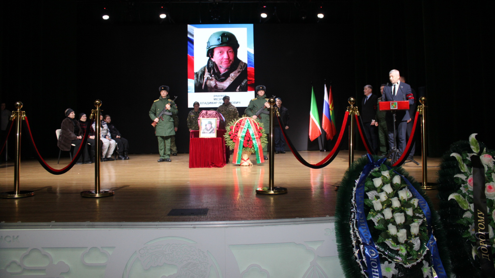 Сегодня Заинск простился с участником специальной военной операции – рядовым контрактной службы Мезриным Владимиром Леонидовичем. Траурная панихида прошла в ДК “Энергетик”.