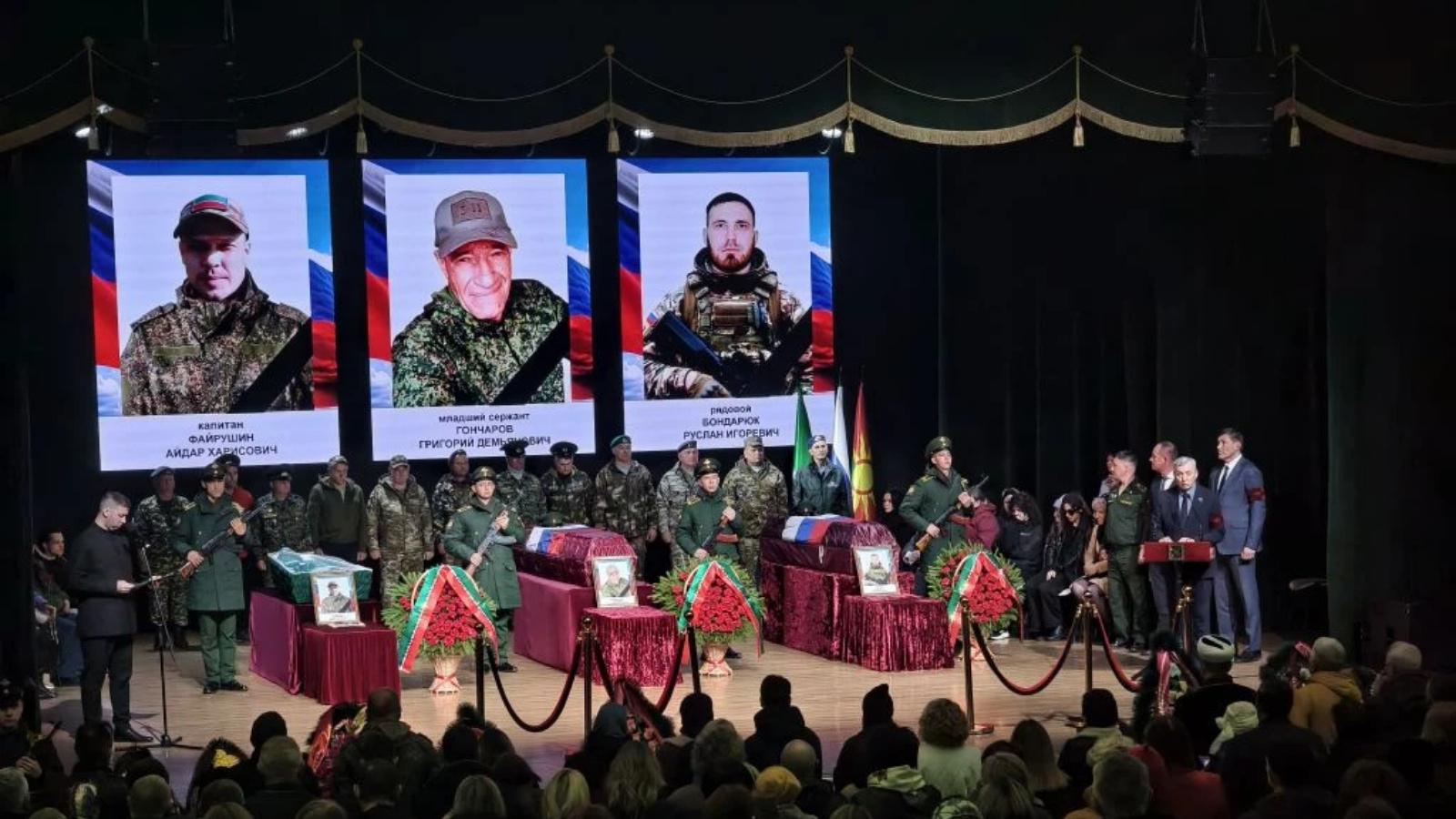 Сегодня Заинск простился с участниками специальной военной операции капитаном Файрушиным Айдаром Харисовичем, младшим сержантом Гончаревым Григорием Демьяновичем и рядовым Бондарюк Русланом Игоревичем.