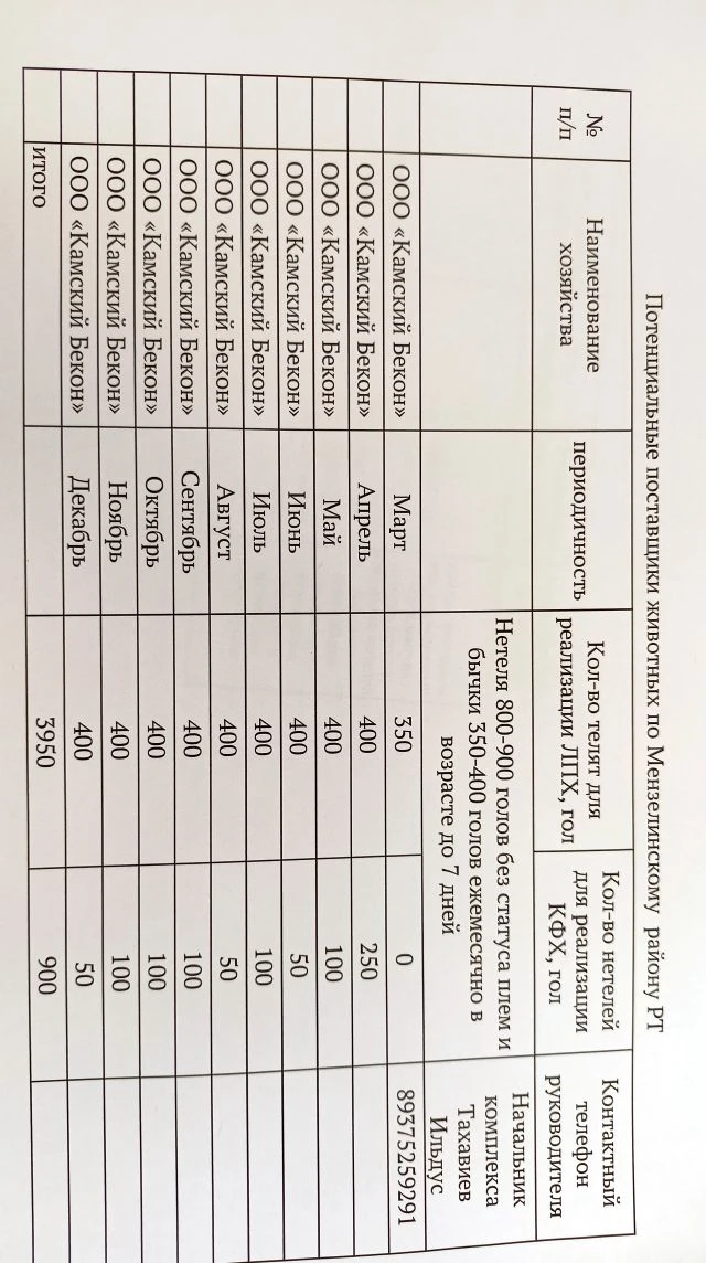 Камск Бекон реализует бычков и нетелей, Мензелинск район Республика Татарстан