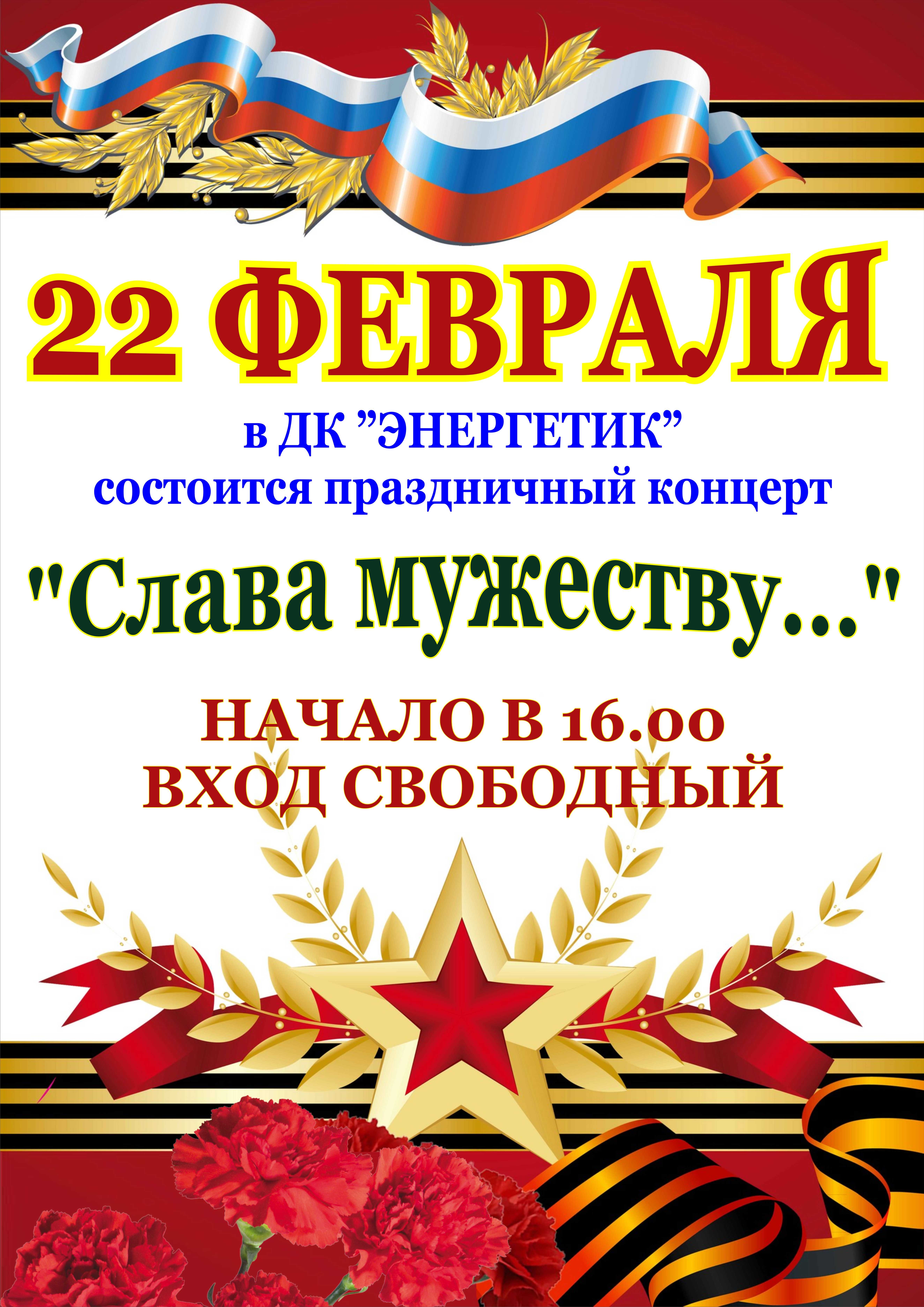 "Слава мужеству..." 22 февраля в ДК Энергетик состоится праздничный концерт