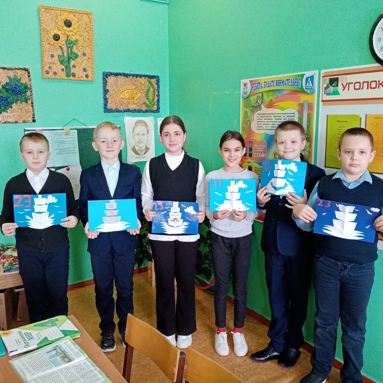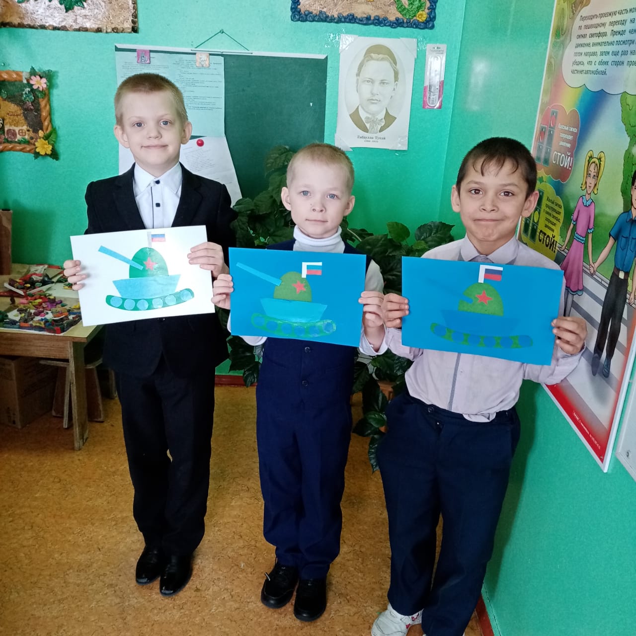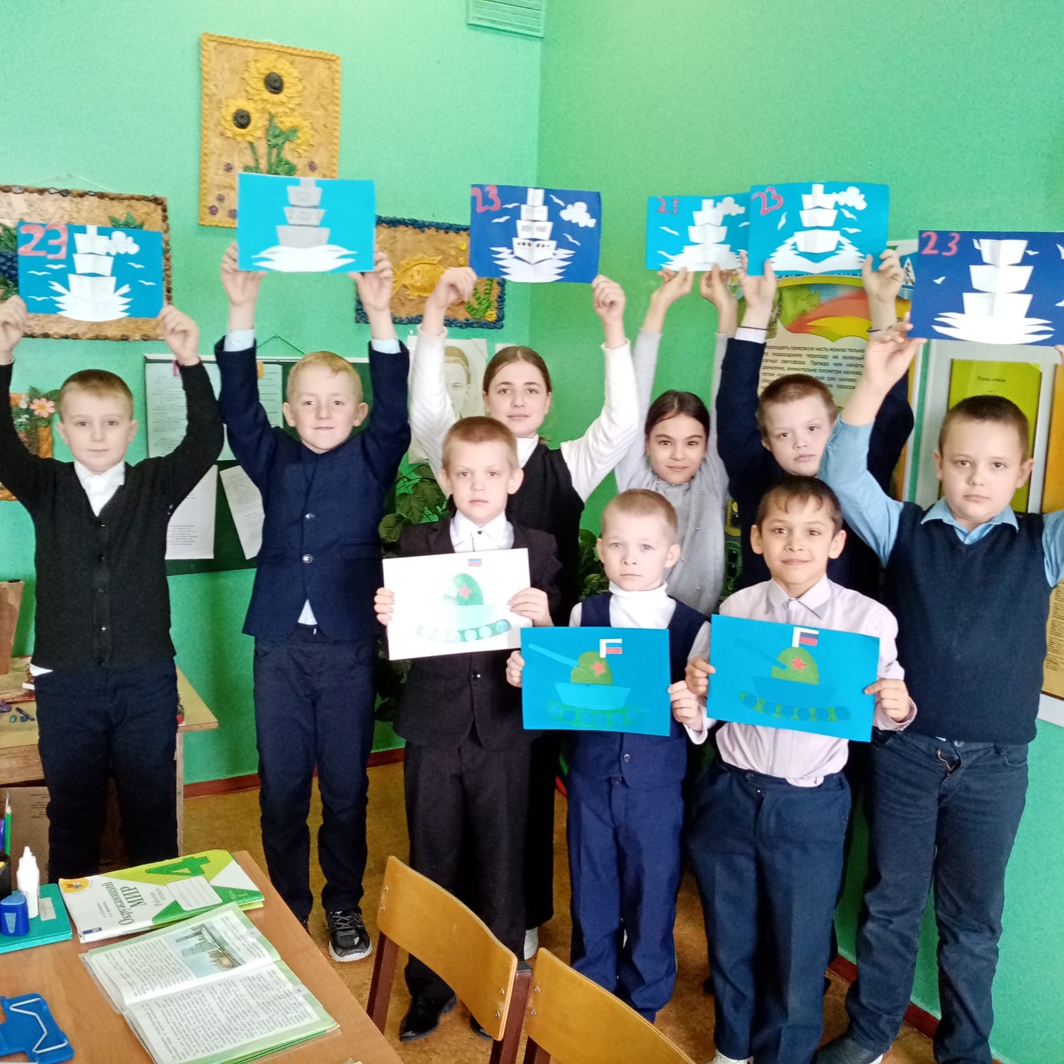 Ученики начальных классов Поручиковской ООШ смастерили своими руками подделки приуроченные ко Дню Защитника Отечества