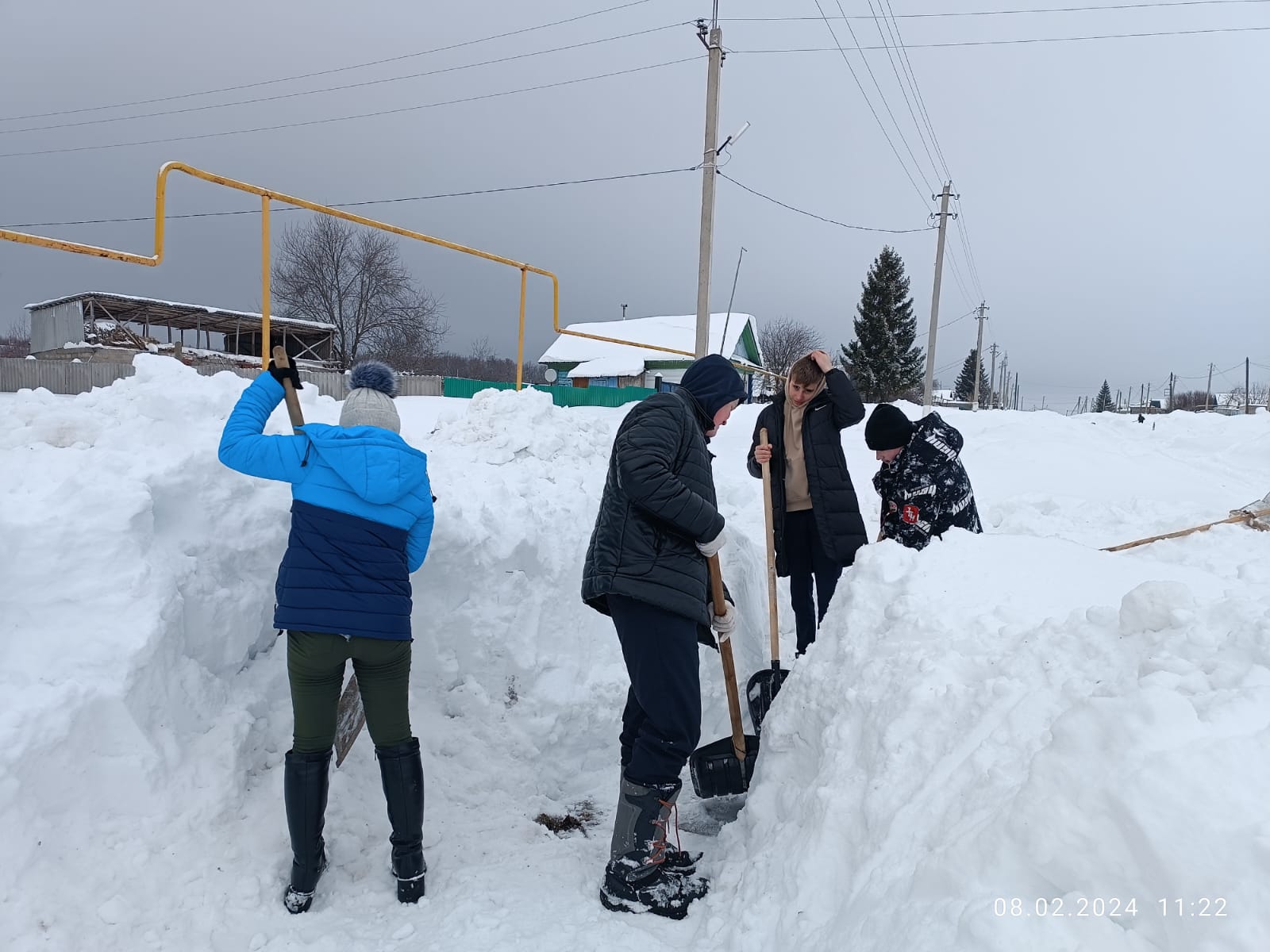 Силами школьников и работниками сельского дома культуры на территории села очистили от снега пожарные гидранты.