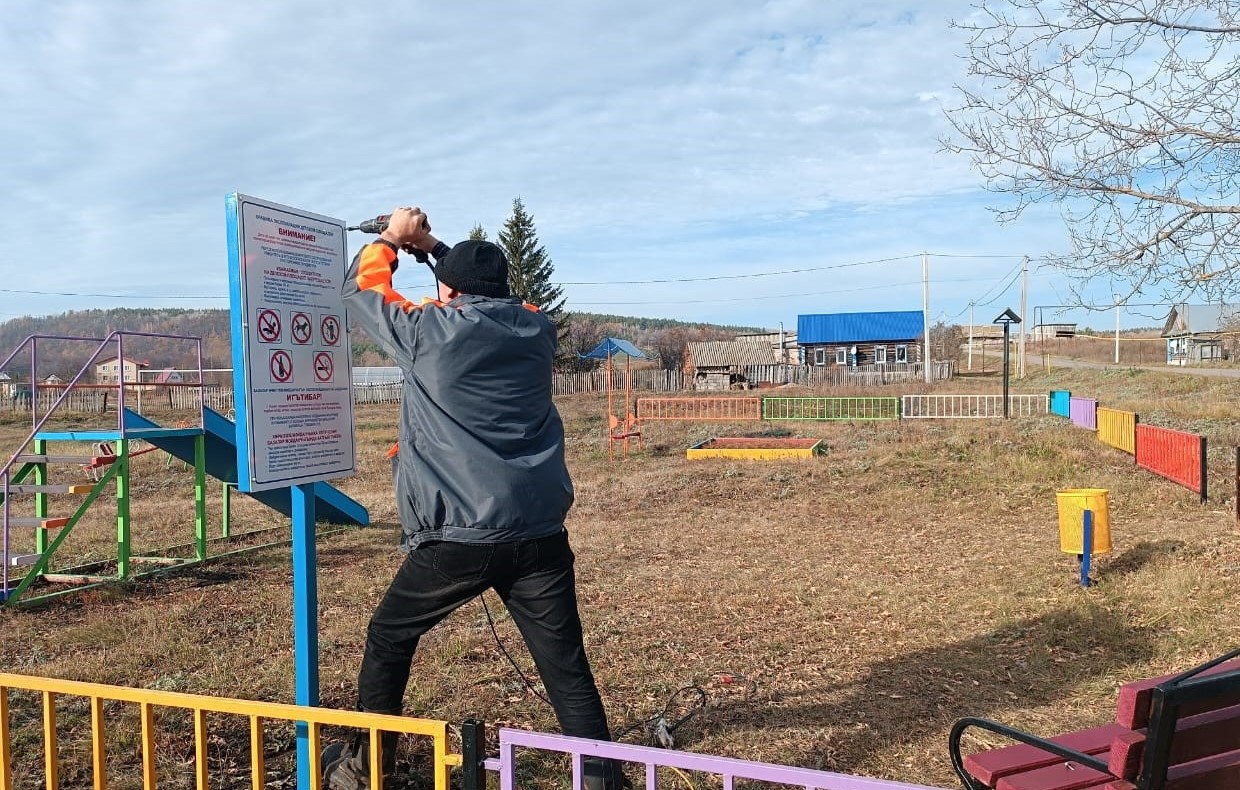В д.Камышинка на детской площадке был установлен информационный стенд "Правила эксплуатации детской площадки"