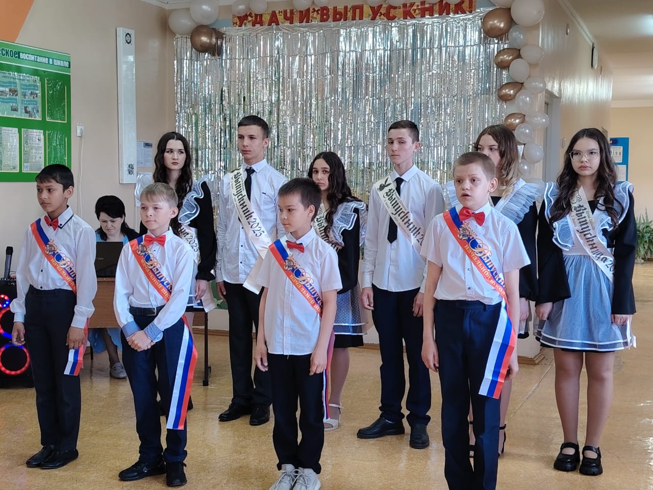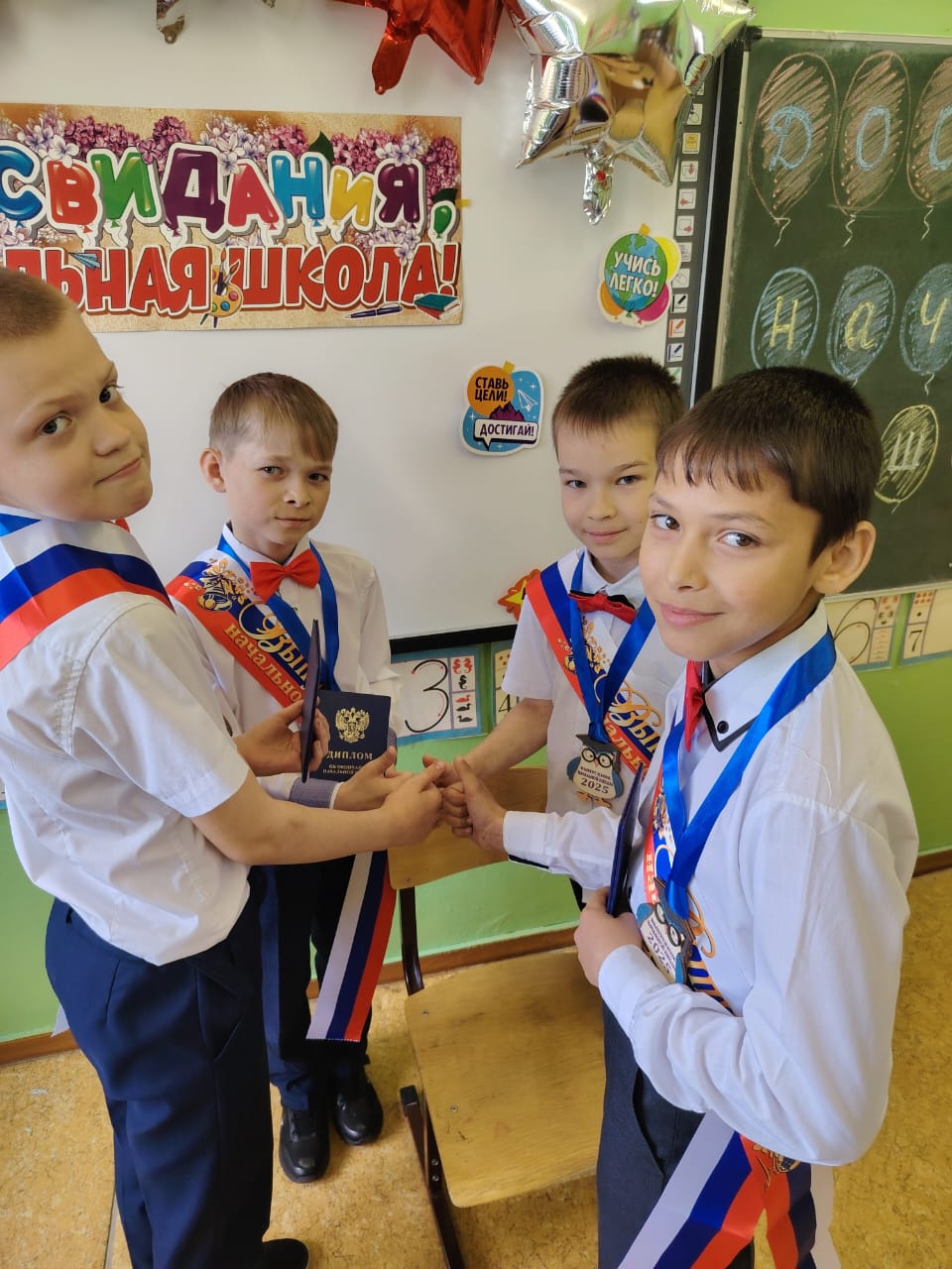 Прошла торжественная линейка и для выпускников начальной школы. Вот уже позади 4 года учебы. Ученики за годы росли, учились, творили, участвовали во всех мероприятиях школы. Сегодня они нарядные вместе с учителями, родителями и гостями собрались: спели песню, прочитали стихи, поблагодарили и родителей и педагогов.