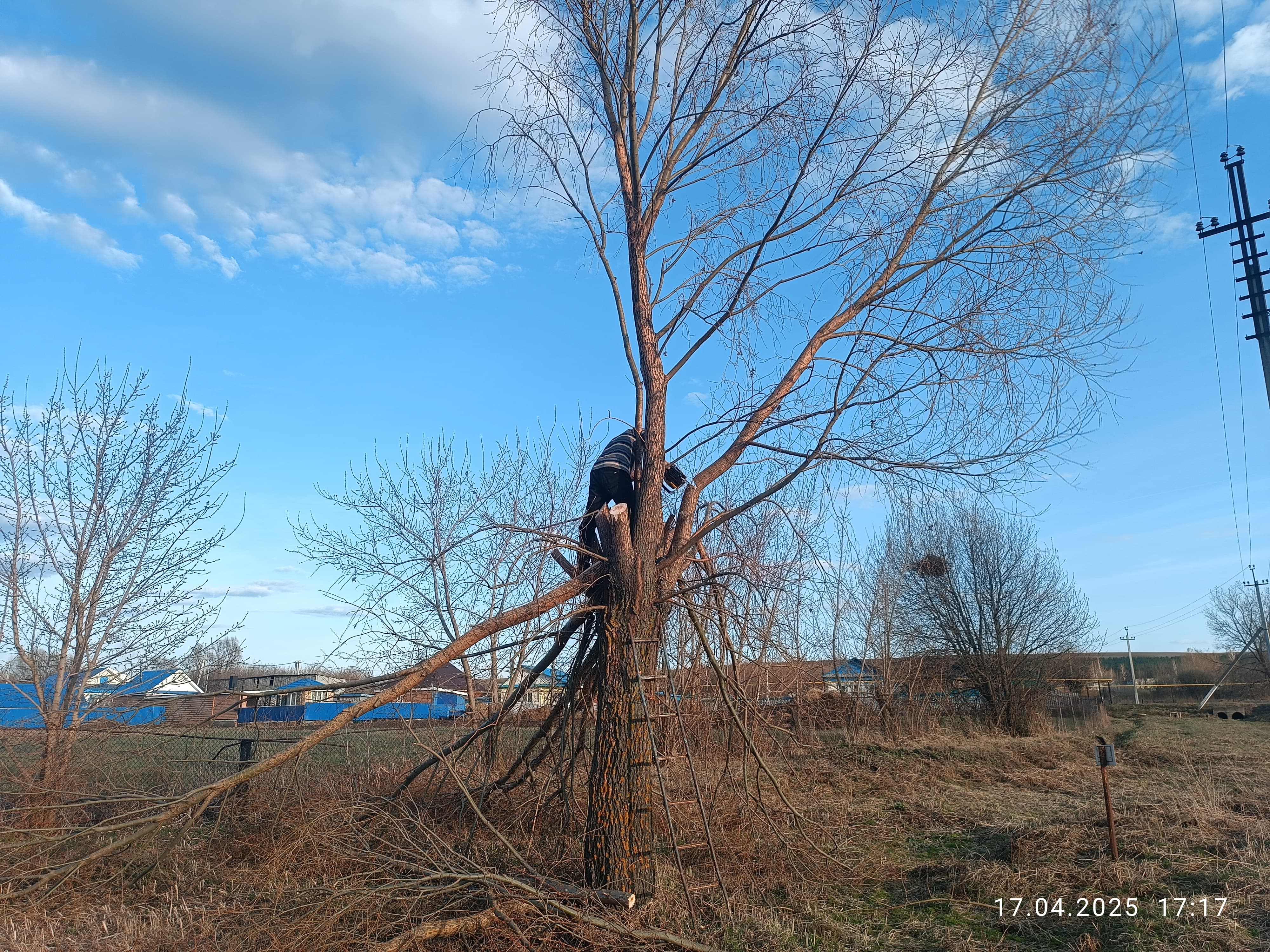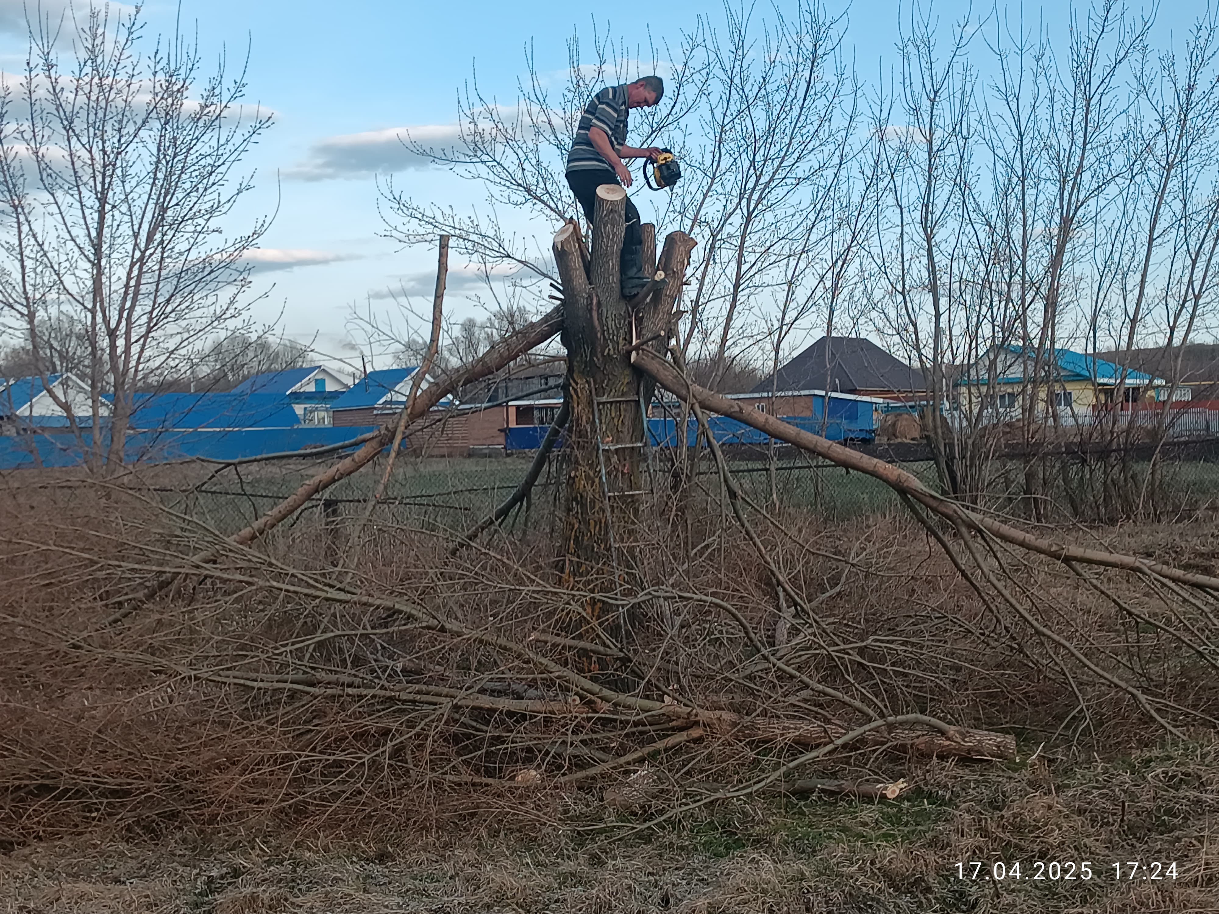 В с.Сарапала была проведена частичная работа вырубки старых деревьев.
