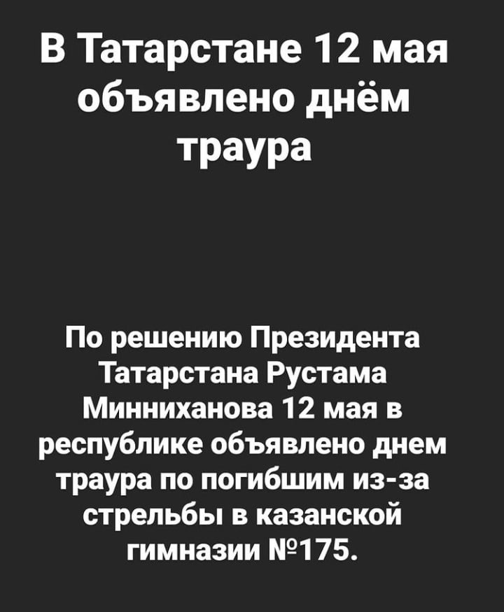 В Татарстане 12 мая объявлено днем траура