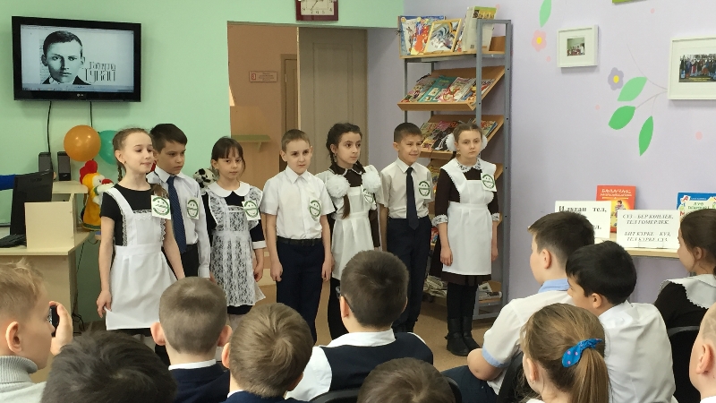 “Мин татарча сөйләшәм” акциясе кысаларында Үзәк балалар китапханәсендә 4нче мәктәпнең 3 “б” сыйныф укучылары белән “Тукай яши безнең арада” дип исемләнгән әдәби тематик кичә уздырылды. Балалар шагыйрьнең әдәби әсәрләре, әкият геройлары белән таныштылар. Аларга бигрәк тә дөнья халыкларының 15 теленә тәрҗемә ителгән “Шүрәле” китабы ошады. Кичәдә шулай ук шигырьләр, җырлар яңгырады, соңыннан балалар бик яратып “Татармультфильм” берләшмәсендә төшерелгән “Кызыклы шәкерт”, “Сөткә төшкән тычкан”, “Эш беткәч уйнарга ярый” мультфильмнарын карадылар.