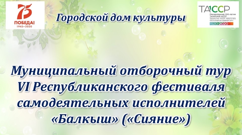 2020 елның 6 февралендә сәгать 10.00 да шәһәр мәдәният йортында Татарстан Республикасы ветераннары арасында үзешчән башкаручыларның «Балкыш» («Сияние») VI Республика фестиваленең муниципаль сайлап алу туры узачак. Фестиваль җыр мирасын саклау, туган якка, хезмәт кешеләренә һәм халыклар дуслыгына багышланган халык иҗатын популярлаштыру, ветераннарның иҗади сәләтләренә ярдәм итү, аларның иҗади потенциалын тагында үстерү һәм тормышка ашыру өчен шартлар тудыру максатыннан үткәрелә. Ул «Парлап җырлау», «Вокаль ансамбль», «Вокаль-инструменталь ансамбль», «Инструменталь ансамбль», «Хор коллективлары», «Фольклор коллективлары», «Поэзия, сәнгатьле уку», «Хореография», «Оригиналь жанр» номинацияләре буенча үтәчәк. Жюринең бәяләү нәтиҗәләре буенча катнашучылар дипломнар белән бүләкләнәчәк. Фестивальдә катнашу өчен гаризалар 2020 елның 5 февраленә кадәр,"Балкыш"фестивале билгесе астында (tatyana.leonovich@tatar.ru)электрон адресы буенча кабул ителә. Нигезләмә белән Зәй муниципаль районының рәсми сайтында түбәндәге сылтама буенча танышырга мөмкин: http://zainsk.tatarstan.ru/rus/19/administer/execut_commitee/structure/uprkultury/balkysh.htm?pub_id=2213462.htm. Белешмәләр өчен телефон: 6-61-31, 6-62-85.