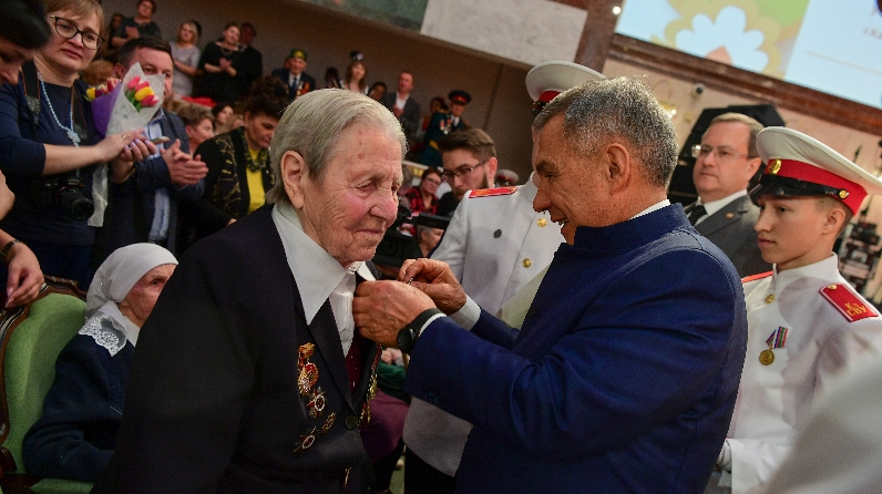 Зәйнең Бөек Ватан сугышы ветераны Анна Моисеева Татарстан Республикасы Президенты Р. Н. Миңнеханов кулыннан бүләк алды