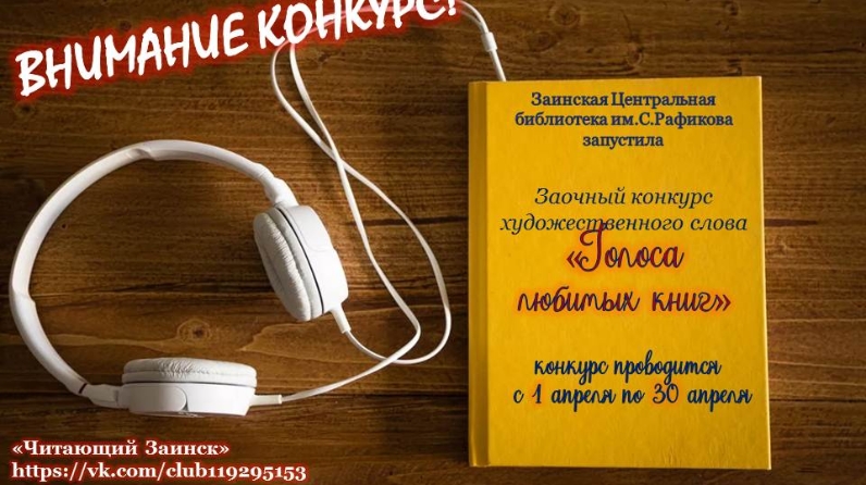 «Китап- бакча ул, андагы язулар- шул бакчаның гөлләре» К. Насыйри С. Рәфыйков исемендәге Зәй Үзәк китапханәсе «Яраткан китапларыбыз авазы...» бәйгесен башлап җибәрде. Әлеге бәйге һәр китап сөючегә үзенең яраткан әсәре белән уртаклашырга, укудан тәм табарга, шатлыклары, хис- кичерешләре белән уртаклашырга мөмкинлек бирә. Бәйге интернетта Вконтакте социаль челтәренең "Читающий Заинск" (https://vk.com/club119295153) төркемендә үткәрелә. Бәйгедә катнашу өчен яраткан әдәби әсәрдән өзекне видеоязма рәвешендә җибәрергә кирәк. Язма 5 минуттан артмаска тиеш. Конкурста Зәй муниципаль районында яшәүче теләгән һәркем катнаша ала. Бәйге 2020 елның 1 апреленнән 30 нчы апреленә кадәр дәвам итә. Бәйгенең җиңүчеләре (3 җиңүче) социаль челтәрләрдә тавыш бирү нәтиҗәләре буенча билгеләнәчәк. Конкурсның җиңүчеләре һәм катнашучылар электрон дипломнар белән бүләкләнәчәк. Бәйге нәтиҗәләре Вконтакте социаль челтәренең "Читающий Заинск" (https://vk.com/club119295153) төркемендә 2020 елның 30 апрелендә басылып чыгачак.