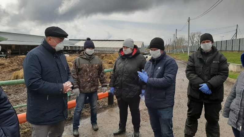 22 апрель көнне район башлыгы Разиф Галиевич Кәримов авыл хуҗалыгы һәм азык-төлек идарәсе белгечләре һәм ветеринария бүлеге башлыгы белән берлектә авыл хуҗалыгы бүлекчәләрен карап чыкты. Сәфәрдә катнашучылар районның барлык сөт-товар фермаларында һәм комплексларында булдылар. Бүлекчәләрдә булуның максаты - яңа коронавирус йогышы таралуга юл куймау буенча чаралар оештыруны, барлык куркынычсызлык чараларын үтәүне, саклану чараларын һәм дезинфекция чараларын куллануны тикшерү иде. Сөт комплексларында һәм фермаларда технологик процесс белән мәшгуль техниканың барысыда (терлек азыгы өләшү, тирес чыгару, сөт тапшыру) дезинфекцияләнә. Район башлыгы билгеләп үткәнчә, район агрофирмаларында эш җитәрлек дәрәҗәдә оештырылган. Шулай ук биредә барлык куркынычсызлык чараларын тәэмин итеп, аз белгечләр катнашында 1 квартал һәм агымдагы апрель ае эшенә анализ да ясалды. Терлекчелек өлкәсе белгечләре якын көннәрдә сөт саву һәм сату эше яхшырачак, дип ышандырдылар, чөнки эре мөгезле терлекләр рационындагы азык өстәлмәләре тагын да арттырылачак.
