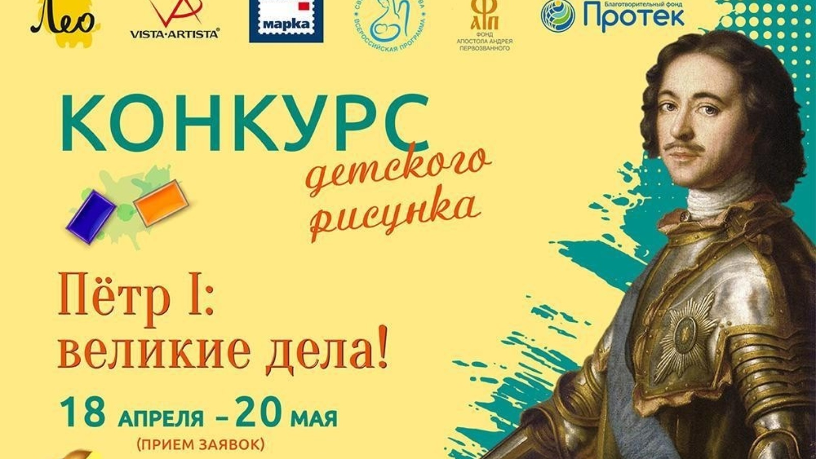 Андрей Первозванный фонды 6 яшьтән 16 яшькә кадәрге балаларны "Петр I: бөек эшләр!» Халыкара рәсем конкурсында катнашырга чакыра.Ул фонд инициативасы белән 1 июнь-Халыкара балаларны яклау көне алдыннан үткәрелә. Электрон гаризалар 2022 елның 18 апреленнән 20 маена кадәр түбәндәге адрес буенча кабул ителә: http://fap.ru/tpost/flggs92nz1-startuet-priem-zayavok-na-mezhdunarodnii Иң кызыклы балалар рәсеме Гран-при титулын алачак һәм маркировкаланган конвертта «Марка» басмасы тарафыннан чыгарылачак, ул илнең барлык почта бүлекләре киштәләрендә пәйда булачак. Шулай ук җиңүче «Протек» Хәйрия фонды һәм ЛЕО һәм VISTA-ARTISTA сәүдә маркаларыннан диплом һәм кыйммәтле бүләкләр алачак. 6-16 яшьлек өч яшь категориясендә призерлар безнең партнерлардан кыйммәтле бүләкләр һәм 1,2,3 дәрәҗә дипломнар алачак. Конкурс финалистларының эшләре конкурсны оештыручы сайтында тамашачылар тавыш бирү өчен урнаштырылачак. Тавыш бирү нәтиҗәләре буенча 2022 елның 9 июнендә тамашачылар симпатиясе призы иясе игълан ителәчәк. Конкурста катнашучыларның һәм финалистларның барысы да конкурсны оештыручылардан исемле сертификатлар һәм дипломнар алачак (катнашучының исемле электрон сертификатлары гариза бирүченең Шәхси кабинетында йөкләп алу өчен ачык булачак).