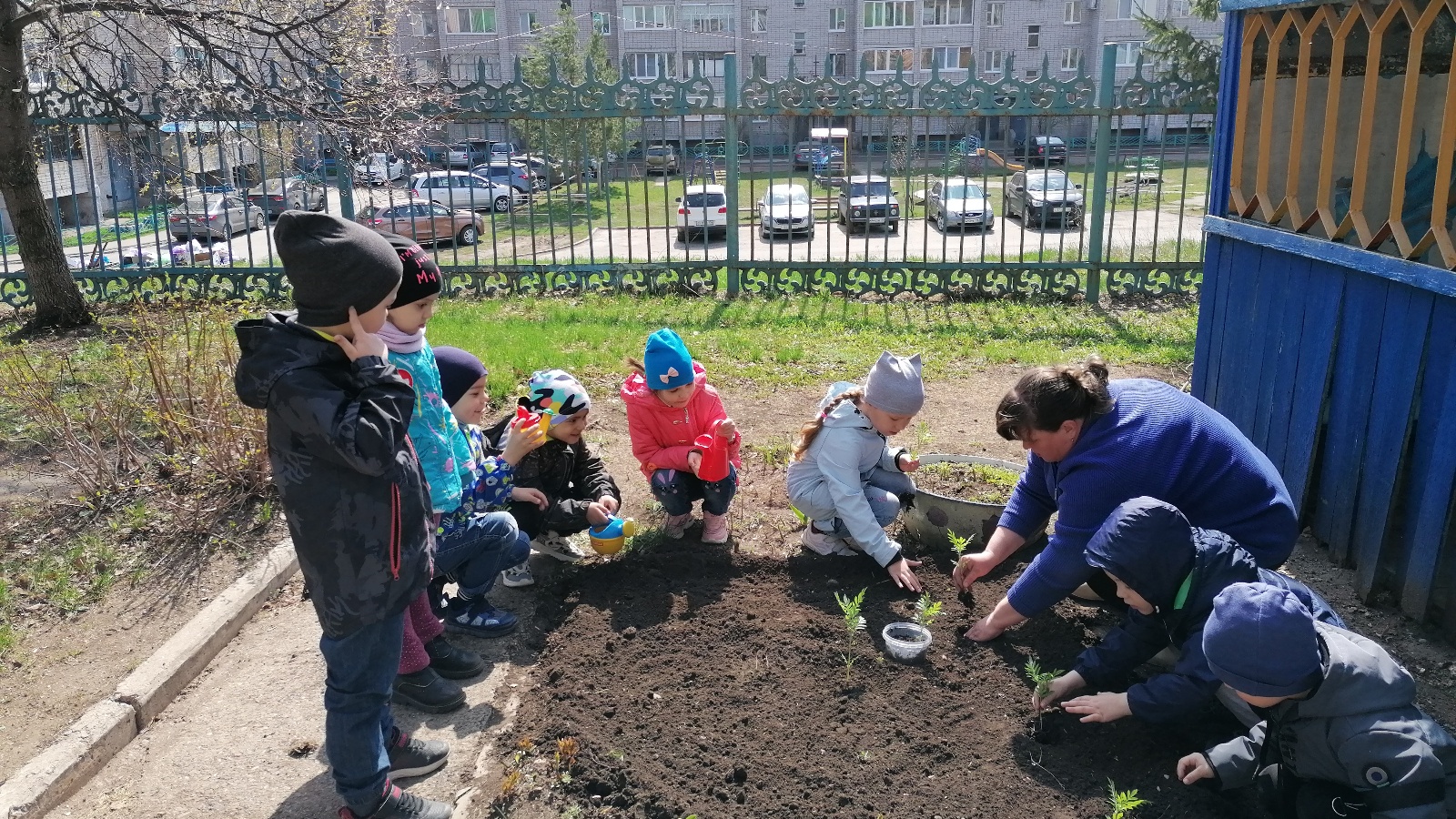 Энҗе балалар бакчасының зурлар төркемендә тәрбияче балалар белән бергәләп чәчәкләр утырттылар. Балалар чәчәк утырту һәм аларны тәрбияләп үстерү турында күп мәгълүмат белделәр. Чәчәкләр матурлык кына түгел, ә тере табигатьнең бер өлеше дә әле. Шуңа күрә аны сакларга Һәм якларга кирәклеген балалар исләрендә калдырдылар. Балалар бакчасы хезмәткәрләре юл йөрү кагыйдәрләре өйрәнә торган территорияне чүпләрдән чистарттылар, чәчәк түтәлләрен әзерләп куйдылар.