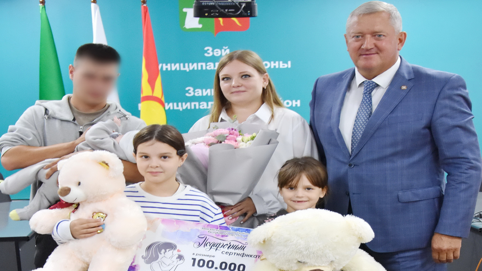Бүген Петровлар гаиләсен бала туу белән район башлыгы Разиф Гали улы Кәримов котлады һәм 100 мең сумлык сертификат тапшырды. Улына матур исем Лев дип кушканнар. Лев-Эрик Эдуард улы һәм Алина Геннадиевна гаиләсендә өченче бала. "Сезне гаиләгездәге иң мөһим вакыйга-бала тууы белән котлыйм. Зәй районында махсус хәрби операциядә катнашучыларның гаиләләренә һәртөрле ярдәм күрсәтелә. Сезгә нык сәламәтлек, иминлек, әтиегезнең җиңеп тизрәк туган җирегезгә кайтуын телим», - диде Разиф Галиевич. Махсус хәрби операциядә катнашучыларның гаиләләрендә районда 25 бала туган инде. Зәй районы җитәкчелегенең төп бурычларыннан берсе-махсус операциядә катнашучыларның гаиләләрен даими кайгыртып тору.