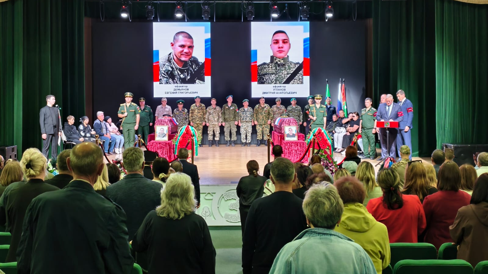 Бүген Зәй махсус хәрби операциядә катнашучылар – ефрейторлар Демьянов Евгений Григорьевич һәм Угланов Дмитрий Анатольевич белән хушлашты. Матәм чарасы «Энергетик» мәдәният йортында узды. Район башлыгы Р.Г. Кәримов хәрбиләрнең туганнарының һәм якыннарының кайгысын уртаклашты. "Бүген, инде дүртенче ел махсус хәрби операция дәвам иткәндә, без көннән-көн : бердәмлек, куркусызлык һәм каһарманлык кебек төп төшенчәләрнең кыйммәтен ныграк аңлыйбыз. Безнең сугышчылар алгы сызыкта сугыш хәрәкәтләрен тагын да зур тырышлык белән дәвам итәләр. Алар сәламәтлекләрен куркыныч астына куеп, кайчак үз гомерләрен корбан итеп, Ватан мәнфәгатьләрен яклыйлар, шул ук вакытта аларның һәркайсы, кайчандыр, Бөек Ватан сугышы елларында, безгә тыныч тормыш бүләк иткән өлкән буын ышанган кебек, чын күңелдән һәм берсүзсез җиңүгә ышана. “Хөрмәтле Евгений Григорьевич һәм Дмитрий Анатольевичның туганнары һәм якыннары! Татарстан Республикасы Рәисе, шәхсән үз исемемнән һәм барлык зәйлеләр исеменнән кайтарып булмаслык югалту белән бәйле рәвештә кайгыгызны уртаклашам. Без үз шәһәребезнең лаеклы улларын югалттык һәм үз гомерләре бәрабәренә Ватан мәнфәгатьләрен яклаучылар истәлегенә үзебез дә аларга лаеклы булырга тиешбез. Югалту ачысын бер генә нәрсә йомшарта ала – безнең хәтер, геройларга хөрмәт, рух көче һәм җиңүгә ышаныч!"- диде Разиф Галиевич.